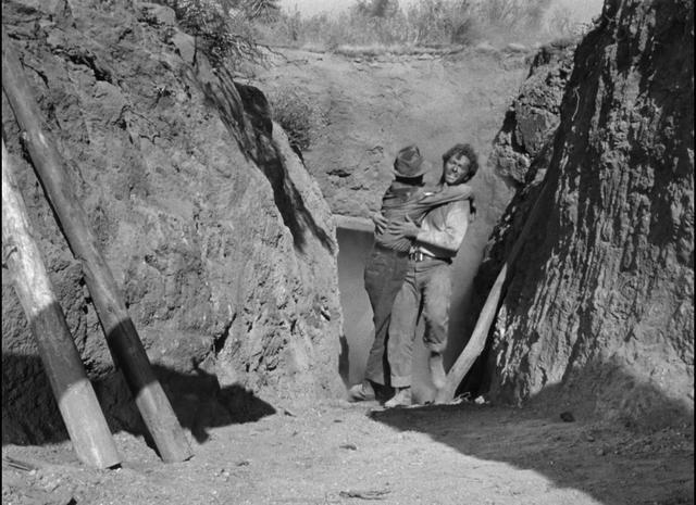 像西部片的电影译名,再看时会觉得这借着淘金故事说的更像是黑色电影的故事。与其说它是西部片与黑色电影的结合,倒不如说是淘金片的外衣下关于人性的故事。最后整个故事看下来更像寓言,贪恋的反噬,一切最后一场空。