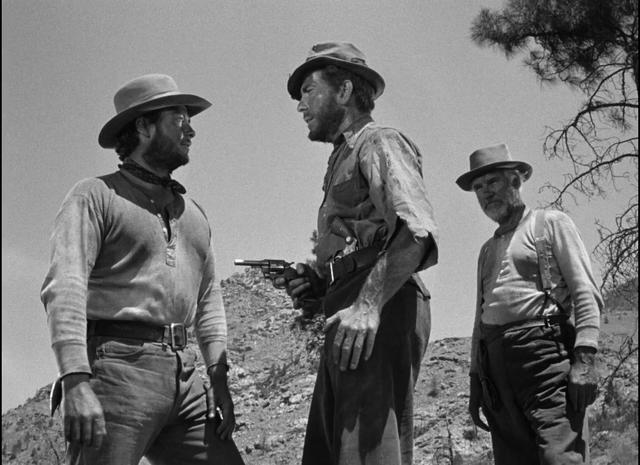 内忧尚未解决,外患又袭来:一个名叫科迪的达拉斯牛仔猜中他们是掘金者,偷偷跟上来后无赖提出:“如今有三种可能,杀了我,赶我走,或者让我成为你们中的一员。”接着在详细分析过三种可能后,悍然提出将三人所得平分为四份。这边四人问题尚未解决,那边又有大批强盗袭来,不知详情的强盗想用金表换枪,怀金心虚的四人主动拉开了战争,枪战中科迪被乱枪打死,闻声赶来的联邦兵避免了事态的进一步恶化。生还的三人读了死去科迪身上的家信,良心的火花闪动了一瞬,但不久后便又渐渐熄灭。