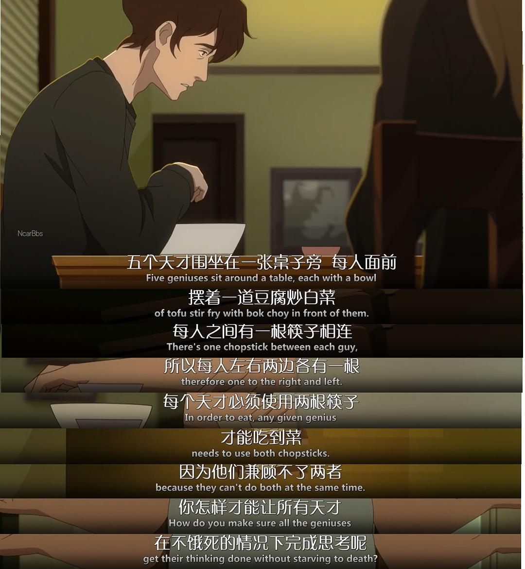 在第一集中,Cary为了测试Caspian在餐桌上提出了一个问题。