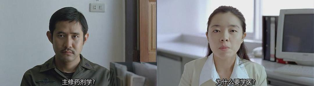 这里举几个例子,我们以药剂师与女医生的对话作为节点(起始点)。截取影片中类比最为明显的两个段落进行对比。来探究阿彼察邦的“引导”技巧。