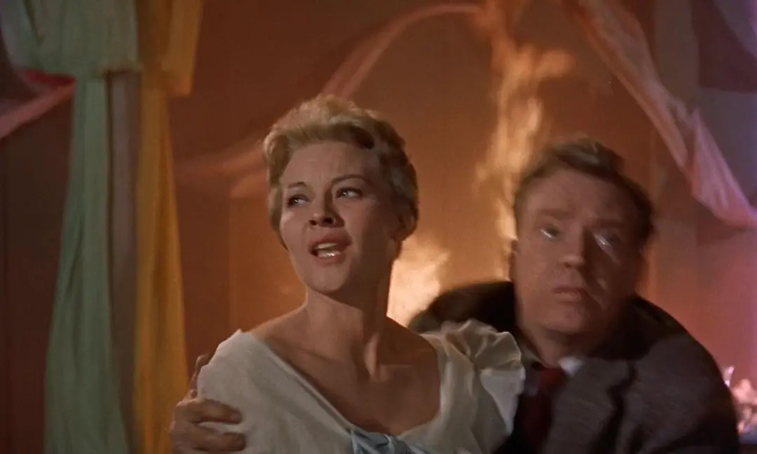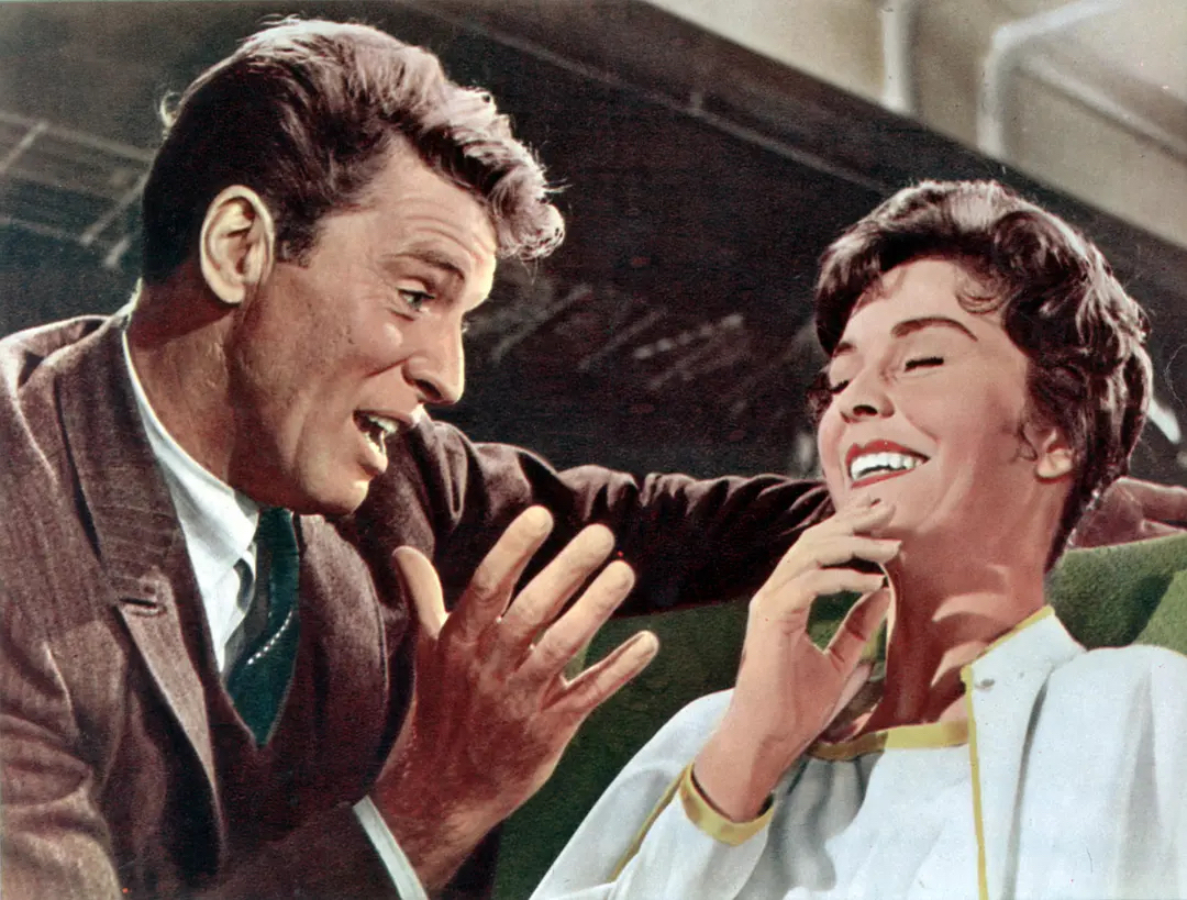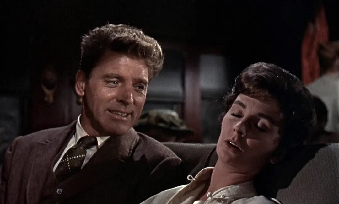 《孽海痴魂》的中文名翻译的十分露骨,其实片中热吻不过只有两次。当时的美国远非今日这般开放,当然更重要的或许是因为女主角简•西蒙斯恰好就是布鲁克斯之娇妻,所谓肥水不流外人田。英国人西蒙斯十五岁甫一出道,就以清纯凄美的形象惊艳影坛。1950年她与另一巨星史都华结婚并进入好莱坞。十年之痒,二人劳燕分飞。恰在《孽海痴魂》上映这年,西蒙斯与布鲁克斯结婚,两人相伴直到今天。