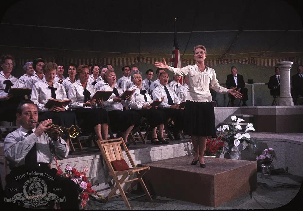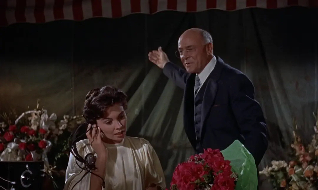 所以,甘特里在片中隐喻着“欲”,而“欲”是最基本的人性。与之相对应的,是雪伦所隐喻的灵性或曰神性。此二人之间的故事,颇能展现灵与欲的张力。导演亦非单纯表现甘特里如何追求雪伦,而是购置了一个有趣的修辞:雪伦的布道与甘特里的推销,其异同分别在哪里?