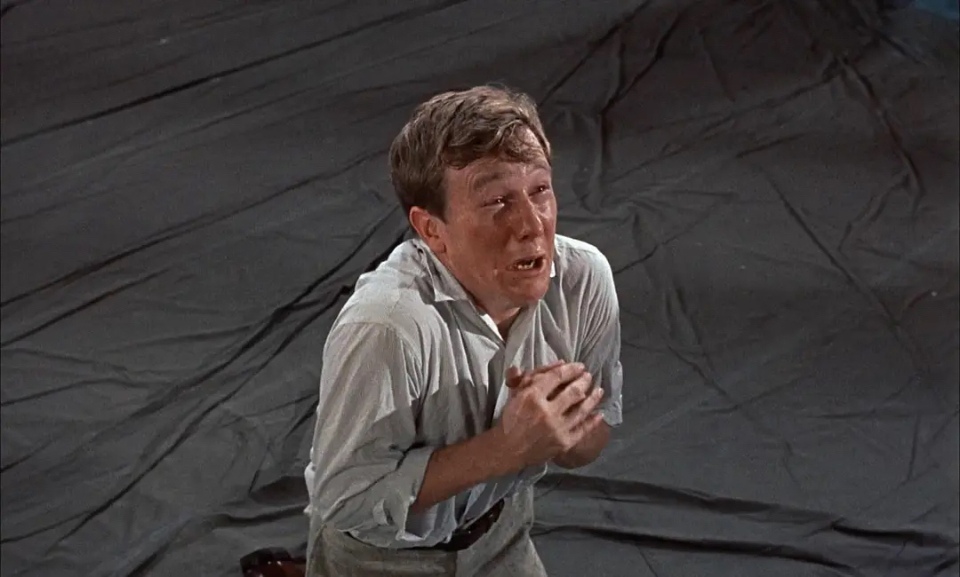 在布鲁克斯的镜头下,原本结成的同盟顿时瓦解。再次回到凡人世界的甘特里和以圣女自居的雪伦终于分道扬镳。在最后一次布道之前,甘特里最后恳请雪伦与他远走高飞,改名易姓,结婚生娃。雪伦当然没有答应,这是意料之中。因此,导演在影片后半部分聚焦信仰的界限,即凡人的信仰即使再虔诚,也不能僭越神权。