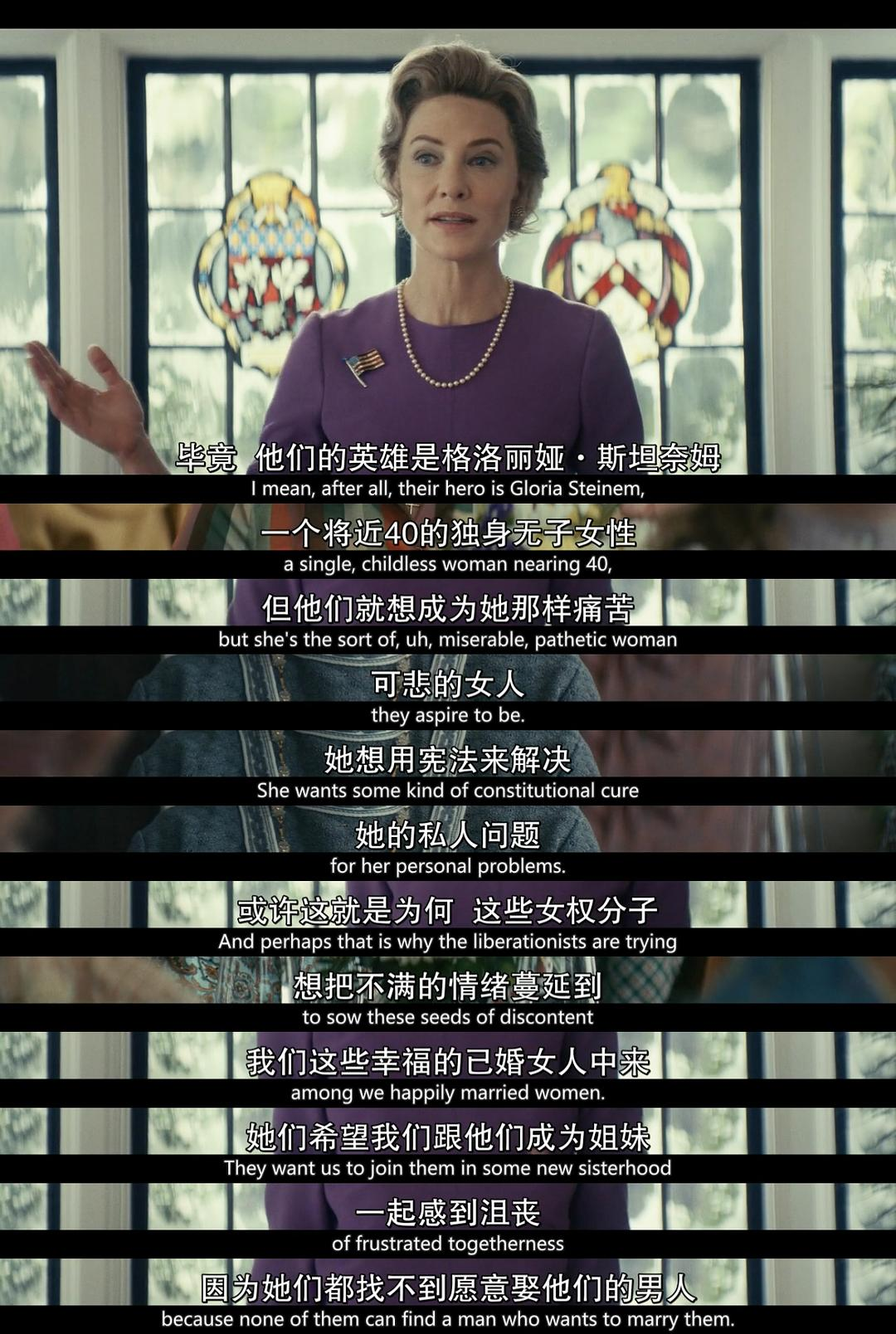所以准确来说,《美国夫人》的真正主角是《平等权利修正案》,它向观众展示了同一时期立场截然不同的两个女性阵营。