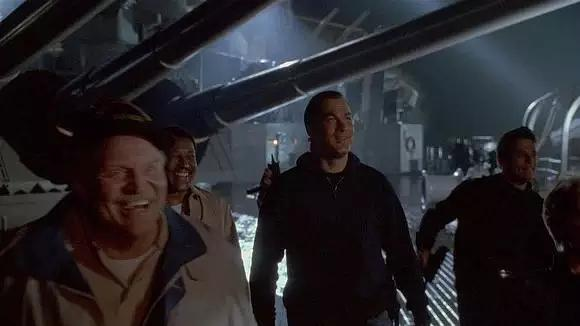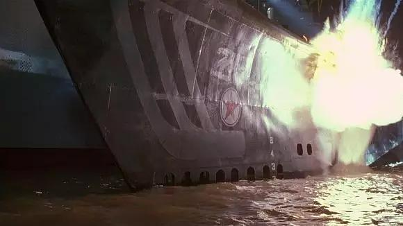 影片后半段舰炮攻击潜艇的桥段可谓创意新颖。密苏里号战列舰是衣阿华级战列舰,舰上共配有406毫米口径三联装主炮三座,前甲板两座,后甲板一座。影片中攻击潜艇的应该是后甲板那座主炮。口径406毫米,炮管长近20米,体形偏瘦的人可以在炮管内爬进爬出,射程30至40公里,如此巨炮一旦发威直教人胆战心惊。无怪乎汤米李被其发射炮弹时的冲击波震飞数米远,估计耳朵暂时失聪,并伴有轻度脑震荡。因此巨炮发射前伴有警笛警告,甲板清场,汤米李亏得还是中情局人士,这点基本常识都没有,还东瞅西瞧,我想导演是为了显示巨炮威力故意设置此情节。