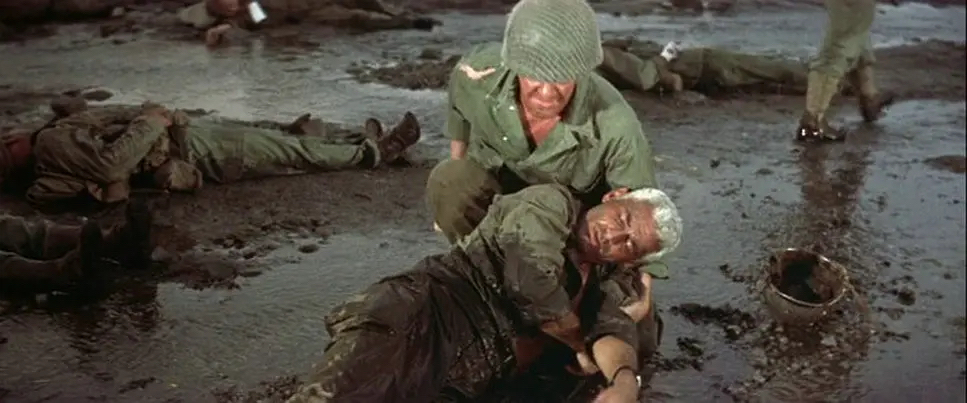 拿下沙杜渣火车站后,按照美军的标准,这支5307突击队基本上被打残,丧失了战斗力,士兵们身心疲惫,筋疲力竭。此时是否再战摆在了梅里尔将军面前,其实哪里有什么选择,只有继续向密支那进军,战斗下去一条路可走。翻越丛山峻岭,悬崖峭壁,莫利的驴埃莉诺累趴下了,莫利心疼驴,替驴背东西,最后累死在山上,永远的留在了缅甸。终于见到了密支那,“当这一切结束,我要去结婚,我会要六个孩子,我会把在这里的事情写在墙上告诉他们我在缅甸是个什么样子,如果他们不哭,我就揍他们一顿”。这段话是5307突击队的官兵们一致的想法。