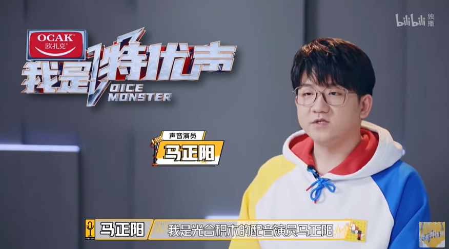 还有一个就是马老师马正阳(是不是改叫马好用更好一点哈哈哈),马老师来做选手我还是挺惊讶的,因为印象里他代表作很多资历也比较深(不过赵乾景参赛更让人意外赵哥你应该在导师席xswl)。光合积木的成员,声线清亮,世家公子类角色特别贴脸。在节目里拿下了《烈火英雄》里的队长,整体表演我觉得挺好的。还有一点,马老师的态度特别让我感动,就是服务于角色。在浮躁的当下,能守住这份初心挺不易的。马老师冲鸭!!!努力成为最好用的配音演员!!!(他这件衣服配色好哆啦A梦我好爱)