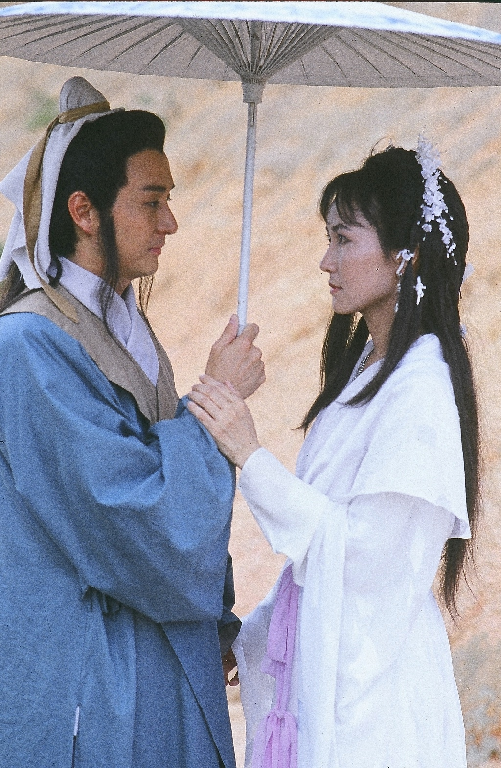 因为Maggie来看这部片的,其实一直不太喜欢邵美琪的古装,那个年代的造型有些臃肿,经常头发乱蓬蓬一大堆头饰把美颜遮的黑乎乎。但那时候的眼睛真是亮,像星星装在一汪湖水中盈盈闪动,生气伤心的时候嘴唇一嘟,让人忍不住怜惜。虽然没有陈美琪造型清新雅致,但的确二美各具风致,美的不同。