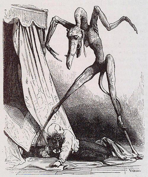 电影里长手长脚的恶魔犬,还挺像爱德华•德•博蒙特为《恋爱中的魔鬼》作画里的魔鬼,当然仅仅是些许像而已,看个乐子。