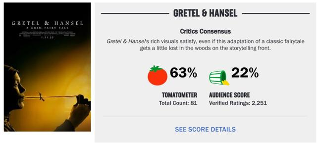 截止到目前,烂番茄的口碑评分出现了两极分化,专业影评人番茄指数为63%及格良好,但大众爆米花指数却只有可怜的22%差得一塌糊涂。