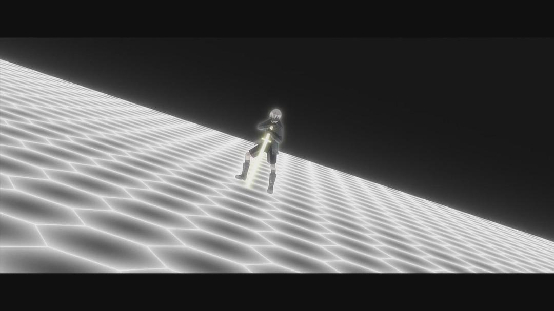 之后首次出现的Hacking场景,个人认为还是挺有新意的。毕竟在动画里不可能沿用游戏原作里那种红白机式的俯视视角三维动画了,这其实也是本次动画翻拍的一大看点和难点之所在吧。