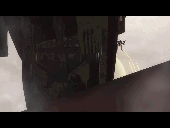 之后再启动的机械臂,被赶到的9S击毁。断裂的残骸没有像原作那样连砸带滚,差点碾到2B小姐姐,而是被POD153执行“归属化”操作后,提起并稳稳放下。