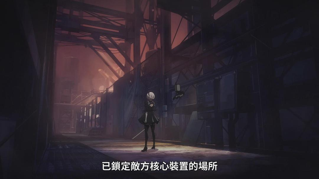 配合飞行视角向前递进的画面,完美转换到废墟工厂内部,可以开始闪避管道和关闭的铁门,撞向那道注定打不开的铁壁,以及期待2B小姐姐正式出场了。