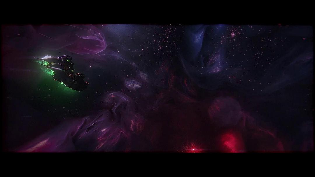 枪与正三角都代表雄性,科莉双手握住枪头,米玛女抚摸瓦斯肯背后的三角形都有特殊含义。在二女的共同麻痹下,科莉杀了瓦斯肯并控制了他的肉体,使其回到崔西号上,呼叫指挥官前来增援。指挥官在半信半疑中来到了,科莉的献祭仪式也随之展开。科莉带起象征萨满祭师的面具,召唤出废弃场周围飞船残骸中的女实体,操控着她们跳起死亡之舞,众多飞船残骸也随之飞舞砸向指挥官舰。此处全片最高潮,打击感与复仇的快感拉满。崔西的女实体也在此时在崔西号内脱胎而出。指挥官舰射出黑粗长插入废弃场,科莉使众女实体聚集起来,把指挥官舰拉来并吸收,完成终极女实体的诞生。