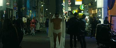 在我涉猎甚少的日本文艺里,daddy issue是个出现得太过频繁的话题,这大概是东亚父权社会的忠实映射。不过当Monica听着Leo给的歌,父亲的幻象不再阴森可怖,而是摇身一变跳起舞来,成了滑稽的丑角。在他的陪伴下,父亲强加的恐惧逐渐瓦解。那个畏缩在父亲阴影之下的小女孩从她身上脱离开来,她把她留在童年的屋子里了。最后关头,她不再怕得浑身发抖,反而一脚踢上幻觉中父亲的要害。当年的救赎来自初恋挥出的拳头,如今则由自己来完成。冷水澡冲走血迹(对于这么一部浪漫主义电影,硬是要求写实的话也未免太煞风景了),也冲走过去的一切,初恋的魔咒消除了,正如父亲的魔咒随着白粉飞入东京的夜色。她终于可以清清白白地面对真实的爱情了。