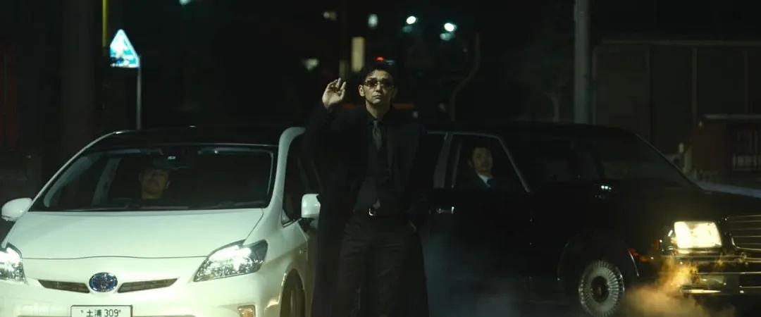 正因《初恋》中大多时候的叙事推进都依靠“奇观式”动作,三池崇史才在动作设计上有了足够多的发挥空间,并依据情节的重要性的不同来制造不同的动作效果。在小配角过场带来的短暂紧张中,巧妙地用略微无厘头的“开车碾头”营造戏谑的喜剧效果,同时迅速推进情节。