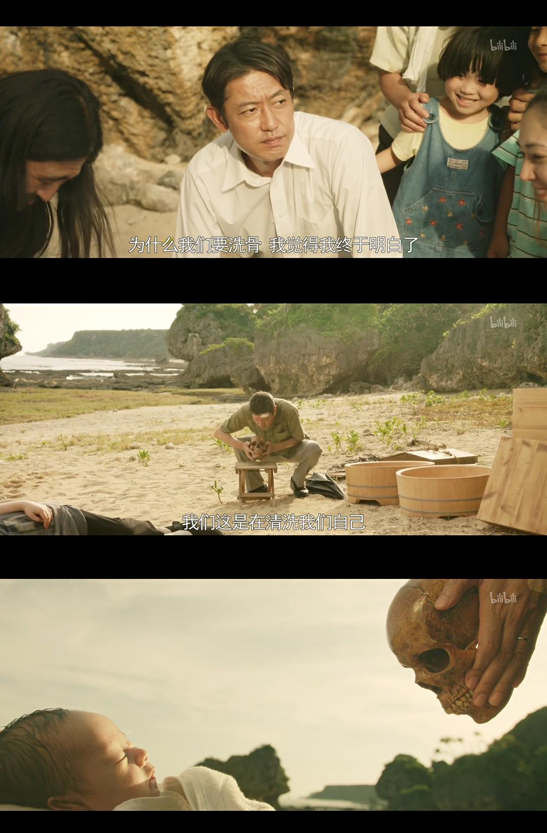 n洗骨大约创造了一次人为的重逢,即便做好了心理准备,打开棺木的那一瞬间,森森然的人骨依旧冲击巨大,新城家的人终于对惠美子的死亡有了更加真切直观的体会。n这是赤裸裸的伤痛,或许正是毫无生机令人毛骨悚然的骸骨,才把一切迷糊、幻想、期待、逃避拉入现实。