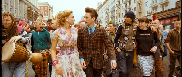 影片中的Stilyagi掀起了一场“色彩革命”。这些Stilyagi就像国内曾经出现过的杀马特狂潮一样,有标志性的外形特点。