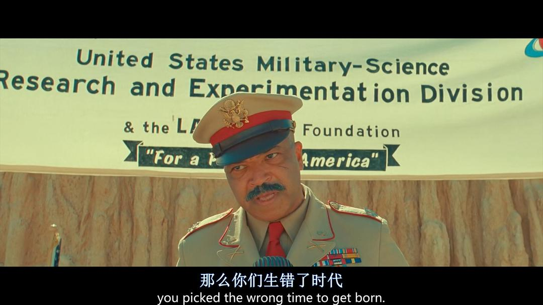 对于我个人而言,感受最强烈的还是赤果果的政治隐喻。先前在《犬之岛》,Wes就已经“变相”让投放至广岛的原子弹“小男孩”登场了。现在,我们又在《小行星城》中再次看到了蘑菇云。Wes关于时间点的设定非常有趣。1950年,杜鲁门在朝鲜战争期间依仗手中的核武器对众人“龇牙咧嘴”,而电影中,总统的最高机密也下达于1950年。1955年,“冷战+抗美援朝”期间,中国提出了建立和发展原子能事业的战略决策,而电影中,外星人危机事件也发生在1955年。宣读机密时,提到“敌对外国政府”,立即出现补充说明,“我不认为外星人是为中方或俄方(片中用的“俄”,莫嚼字)政府服务的,但也说不准。”