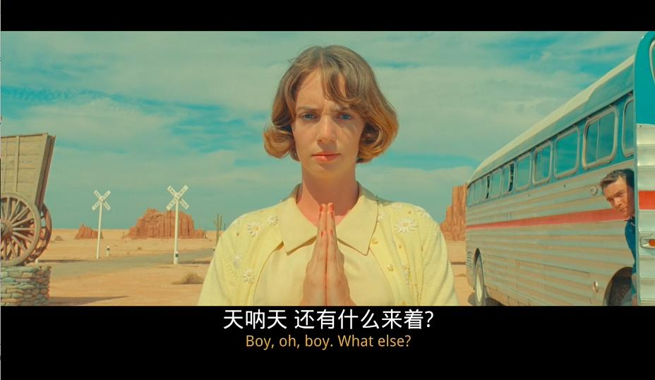 如果要总结,我会说《小行星城》的故事是一群各怀自身精神危机的人被迫困在沙漠小城里,由于他们坦率、真诚、友善、能够理解他人,因此在在危机之后,在互相的交流碰撞后,他们怀着自己背负的精神重担重新出发,每个人都比来之前更好了一点。可能这也是韦斯安德森对于走出疫情后的人们温柔的祝福,所以这部电影的结尾不像《布达佩斯大饭店》那样悲伤。愿你像这部没有坏人的电影里的每个人一样,即使有着自身的问题,但总是能继续继续走下去。