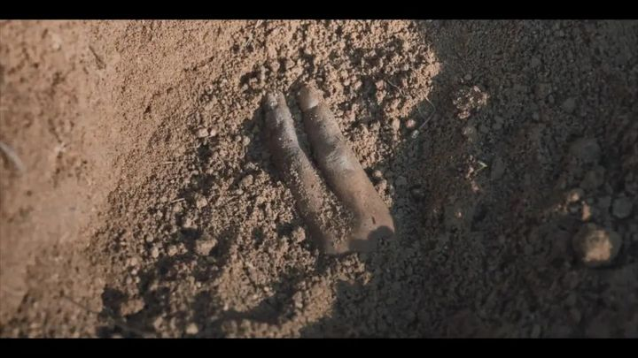 导演在这里选择了留白,但用脚指头都能猜到,土坑里的手必然被渣男看到了。