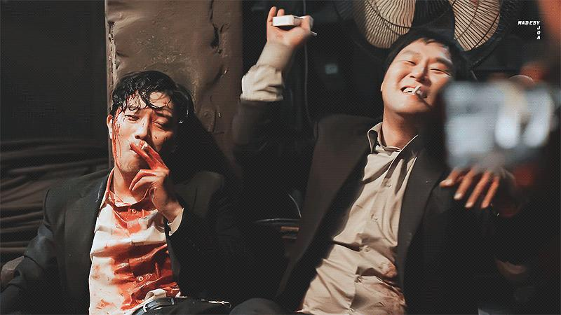 朴叔把崔武镇演绎的太有魅力!叔明明私下是一个腼腆好脾气、体能弱势的爱妻号,神演技呀!崔武镇,残忍血腥又温柔细腻、阴沉城府却不顾一切、威武跋扈但又破碎感,暧昧暗流涌动却不动声色… 刻画得很是有血有肉,忍不住脑补一个毒枭的内心世界,心疼一个狠厉的黑帮大佬… 他的眼神总是好几种情绪融合在一起,一句不说却仿佛说了很多,看着图片自动就能加载台词 ,眼神真的绝了!真不知道走不出来的是这个结局,还是叔的眼神…