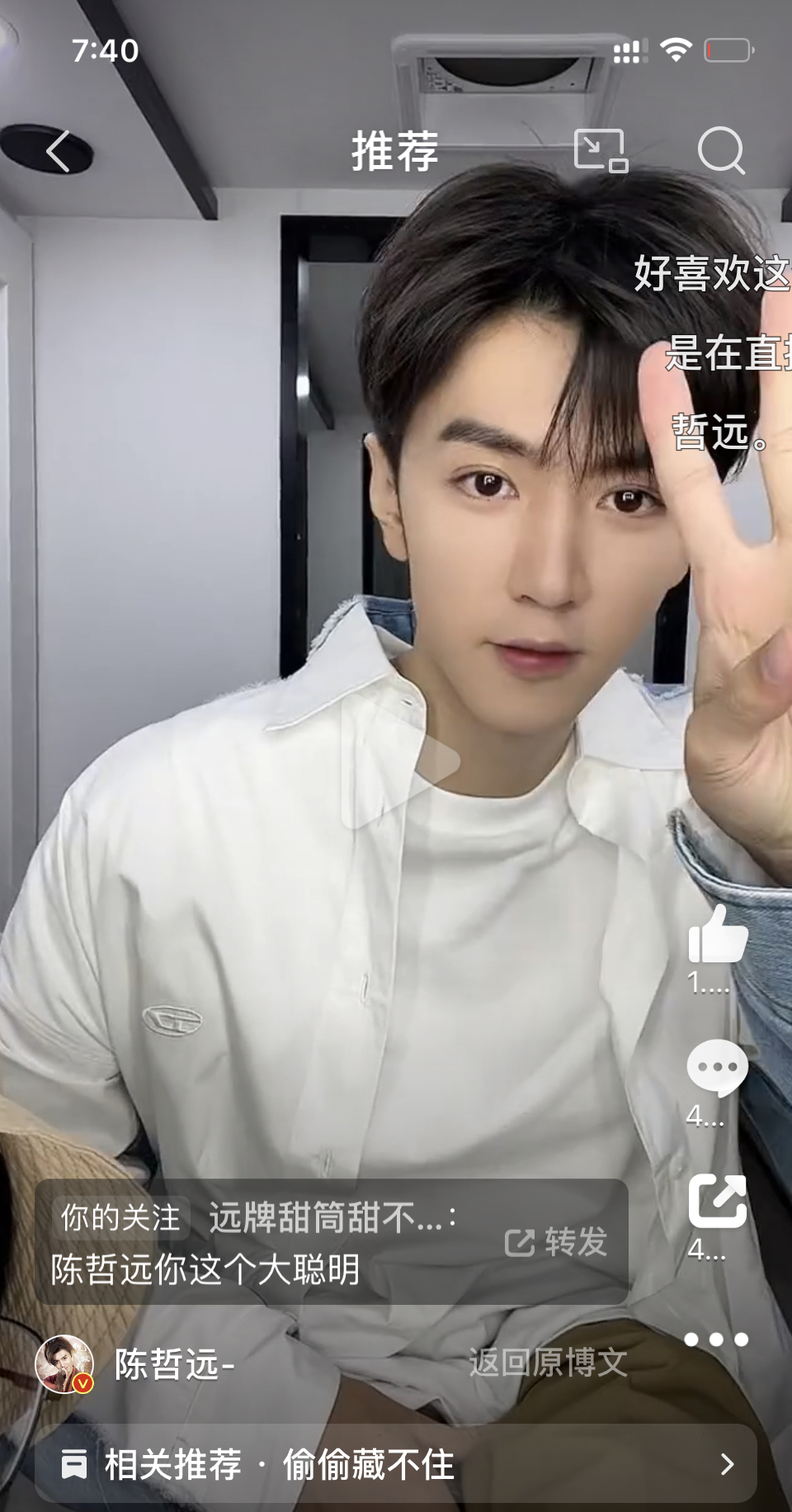 陈在直播中说: