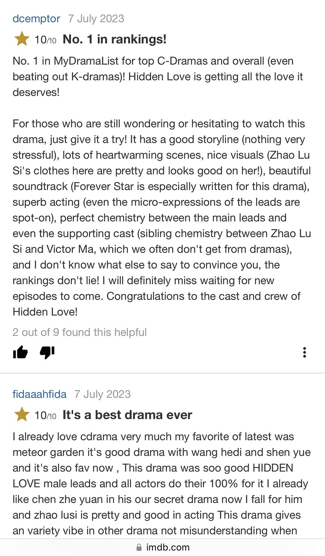 《偷偷藏不住》在MyDramaList上获得了中国电视剧和整体排名的第一名(甚至超过了韩剧)!它得到了所有应有的热爱!