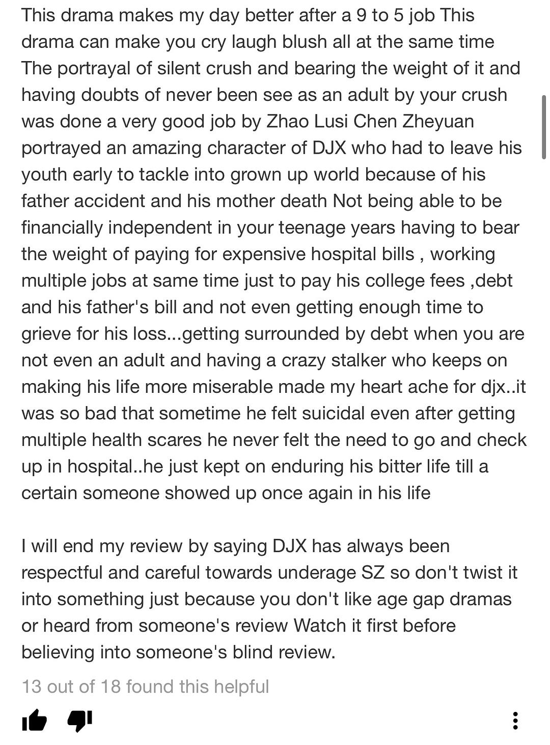 对于那些仍然对这部剧抱有敌意,认为它因为年龄差异等原因让人感到不舒服,请不要将你们扭曲、令人厌恶的想法强加给这部剧,因为显然这部剧不是你们所声称的那样。