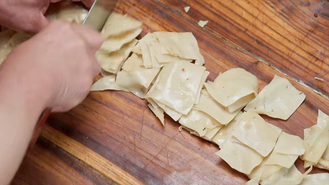 为了使肉汁和面饼更紧密的融合,将面饼切方块再次回锅,肉去了油腻,面有了肉香,肉让饼华丽转身,饼让肉滋味绵长。