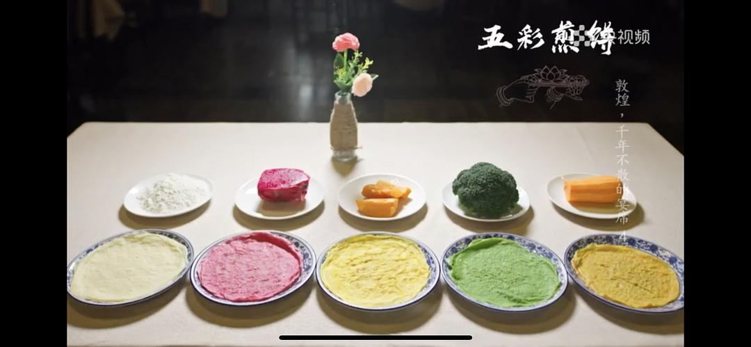 敦煌煎饼 五彩煎饼搭配敦煌流传下来的面辣子(辣椒放入面糊熬熬熬)