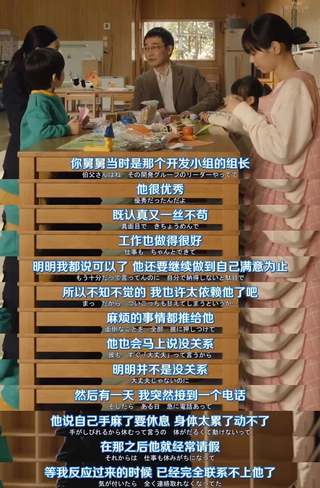 本来单身无可厚非,置放在这种情景下,就显得格外不是滋味。特别是,原本雅治跟父母同住,享有一个相对清净的空间,可妹妹一家兴师动众地搬回来,他就直白地成了别人口中的「巨婴」「家中蹲」「窝囊废」,就连小侄女,也把「恶心」挂在嘴边,那么来自亲人的伤害,就倍感唏嘘。