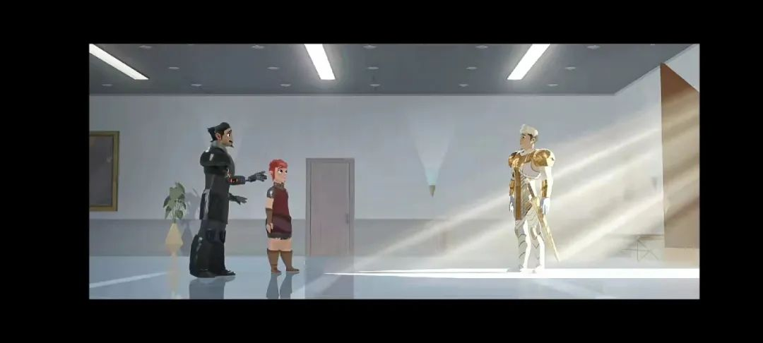 虽然这个动作完全可以预料,但我仍然被这一幕所深深触动。此时唯一能拯救她的只能是他,男主角再次以骑士的身份站在女主角面前,和执剑的葛萝丝面向同一方向,和女主角相对,但是这次他却是以一个真正的骑士应有的姿态出现,成为一个拯救者,将破碎的女主角温柔但拼尽全力地托起。