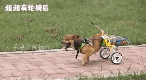 同时出生的兄弟已经被领养。nn超超因残疾一直生活在救助站。n医生讲,超超手术后恢复站立的可能性也不大。nn但它天性乐观,有了轮椅后更是健步如飞。n