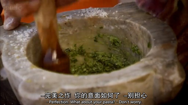 詹纳罗的玩笑确实是我一开始有点难以适应的,例如说安东尼奥用弯腰的动作掩饰放屁。这让我不禁想起自己在罗马图拉真柱附近一家咖啡厅时,因为不太了解当地站着喝和坐下喝的点单规则,被一个典型矮胖意大利中年男子用极其夸张的声音和动作引到一张桌子边时自己的尴尬,无疑那次的记忆影响了我对意大利人乃至意大利的印象。但看着詹纳罗每次都一边表示出嫌弃的开着安东尼奥的玩笑,一边揽下所有的粗重活计时,渐渐懂得了意大利人的可爱之处。而真正爱上詹纳罗是在他们前往一家融合料理餐厅,他坚决拒绝品尝端上来的那盘所谓的意大利调味饭时展现出的真性情。