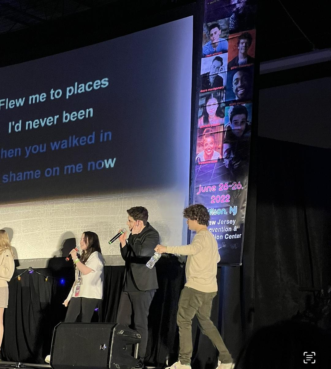 当天晚上Gaten又主持了一个K歌的party,不过因为他在声带的休息期(说了一天话了确实不容易)他没有唱歌而是跟着粉丝们的歌声跳来跳去,超级可爱