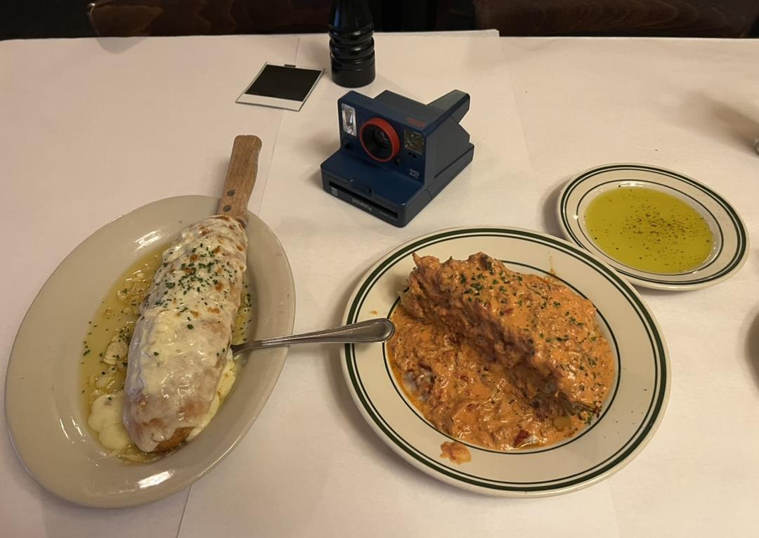 在中学打卡结束后,迎着夕阳飚向Enzo's,没错,就是那个Hopper心心念念的Enzo餐厅,那个他在Russia思念了一年和Joyce共进晚餐的地方,那个第三季中他苦苦等了Joyce几个小时的地方。几天前怪奇第二部分上映的时候,我看到hopper在Russia面带微笑说着他想当我亲自坐在这里,坐在Hopper用过的那张桌子,点了一份hopper思念已久的,和他所说的一模一样的Breadstick和Lasgania,配上他想要的橄榄油,这部剧对于我来说,有一部分已经成为了现实,眼眶也湿润了...
