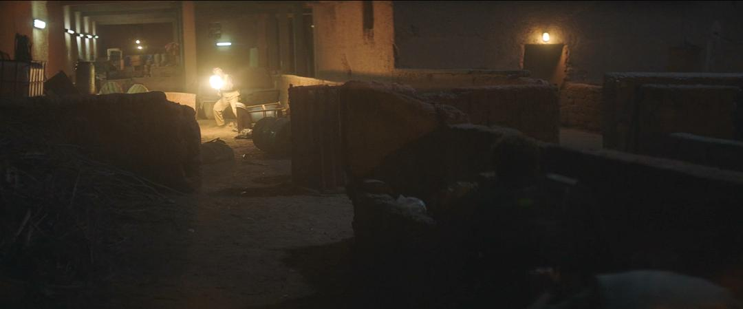 你可以发现,影片开头使用了一个效果出众的长镜头。通过一段风沙巧妙地把两端长镜头拼接成一个超长镜头,可以由此看出导演的调度能力还是很不错的。
