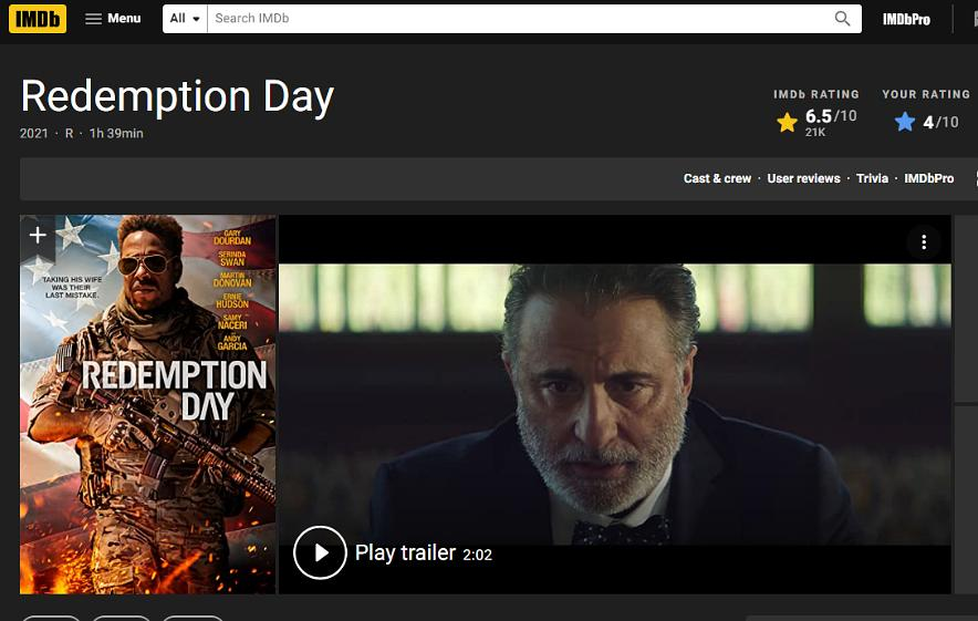在国内影片资讯网站上,《救赎之日》的影片标签是“动作”和“爱情”。