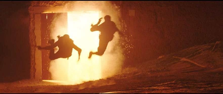 一场战斗不可避免,两人互相掩护彼此照顾杀入极端分子老巢,乒乒乓乓,反正就是爆炸、火光、血浆、惨叫,经过一系列激烈搏杀,虽然两人都有受伤但不致命,过程比较顺利,布拉德找到了妻子凯特,但在突出重围时遇到了困难。