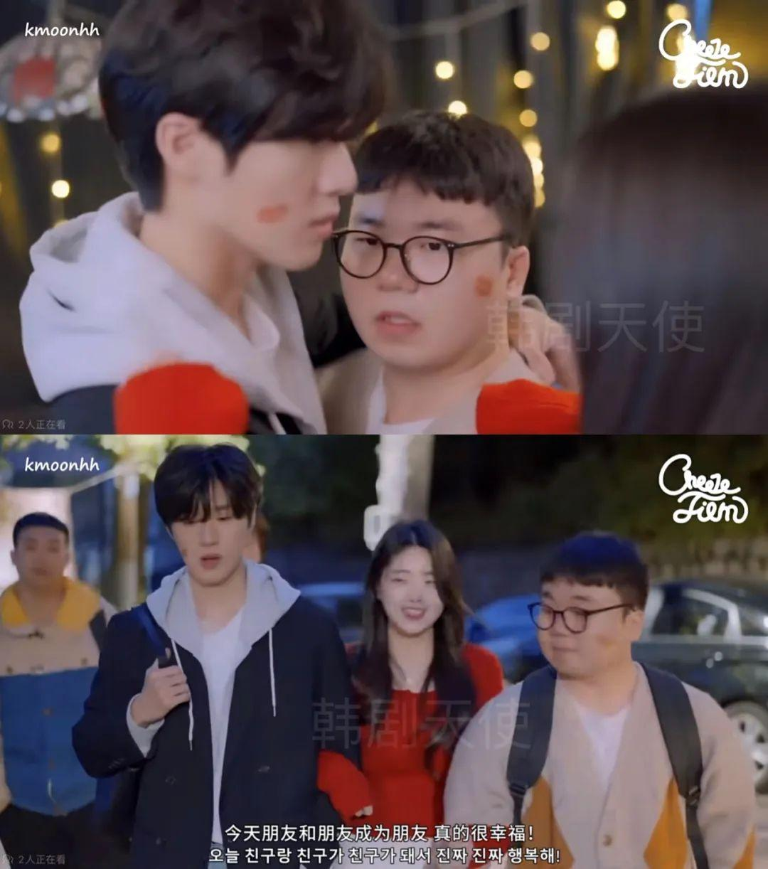 紧接着胖男生和女生约会时,又出现一个争风吃醋的男生。
