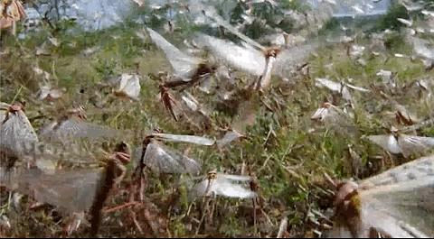 n遮天蔽日的蝗虫对密恐患者很不友好。nn为了获得食物,蝗虫军队每天行进惊人的100公里,吞噬40万吨食物,所到之处一扫而空。n甚至跨越红海和喜马拉雅山,成为有史以来第一次抵达西藏的蝗群。nn