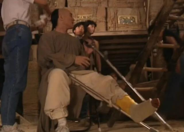 然后到镜头特写的时候,徐克马上换上李连杰;后者的脚上吊着石膏,脸上还得表露出或坚毅或调笑的神情。