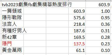 另外貼上一舞網絡熱度,居然贏了此前的冠軍隱形戰隊。一部電視劇最慘不是被罵,而是播了都沒人知道,一舞再怎樣不算失敗了吧。