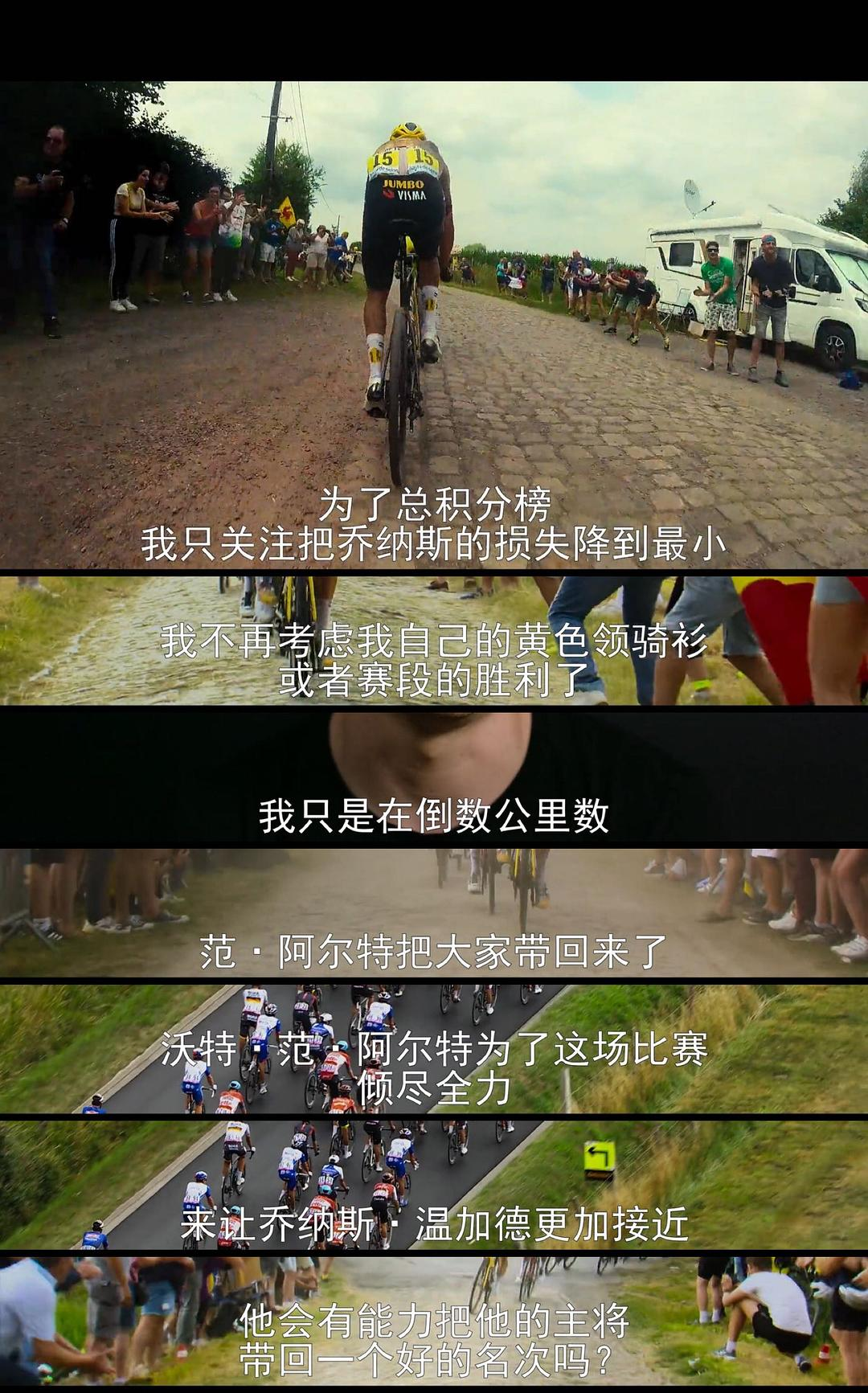 第九赛段,荣格尔斯和皮诺的对决,老人输了,新人出现,还给了fdj的大卫戈杜一个镜头。nn---------第二集--------n这集主角是维斯玛,原来22年珍宝就是双主将。三个赛段第二后,范阿尔特穿了黄衫,赢下了第四赛段。nn第五赛段是石板路,珍宝换车名场面,罗格里奇摔车肩膀脱臼,团队就更偏向温格高了,阿特下来带了温格高,牺牲了自己的黄衫和赛段冠军,把温格高的时间损失控制到13秒。罗哥就惨了,输了一分半。nnPS 原来这个时候阿特赢赛段和车队总成绩的目标就不一致了。nnn---------第一集--------n英孚教育的老哥第一赛段itt摔了两次orz,第一段的胜者兰帕特就是那个比利时农民之子。雅各布森原来是被赫鲁内维尔挤到护栏上的。n第二赛段雅各布森赢得不容易,黄衫带冲手都倒了。