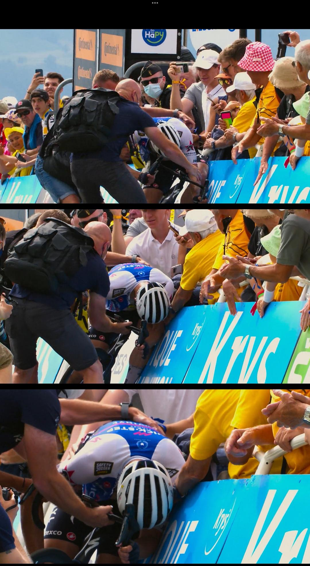 ????‍♀️Fabio,一个撞车后在重症监护室昏迷了三天的自行车运动员,在其中一个赛段比赛限制时间的倒数17秒,在队员的呐喊鼓励中爬上了高坡,冲过了终点线,然后虚脱地倒在围栏旁。