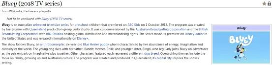Bluey《布鲁伊》是澳大利亚面向学龄前儿童的动画片,于2018年10月1日在ABC Kids频道首播。