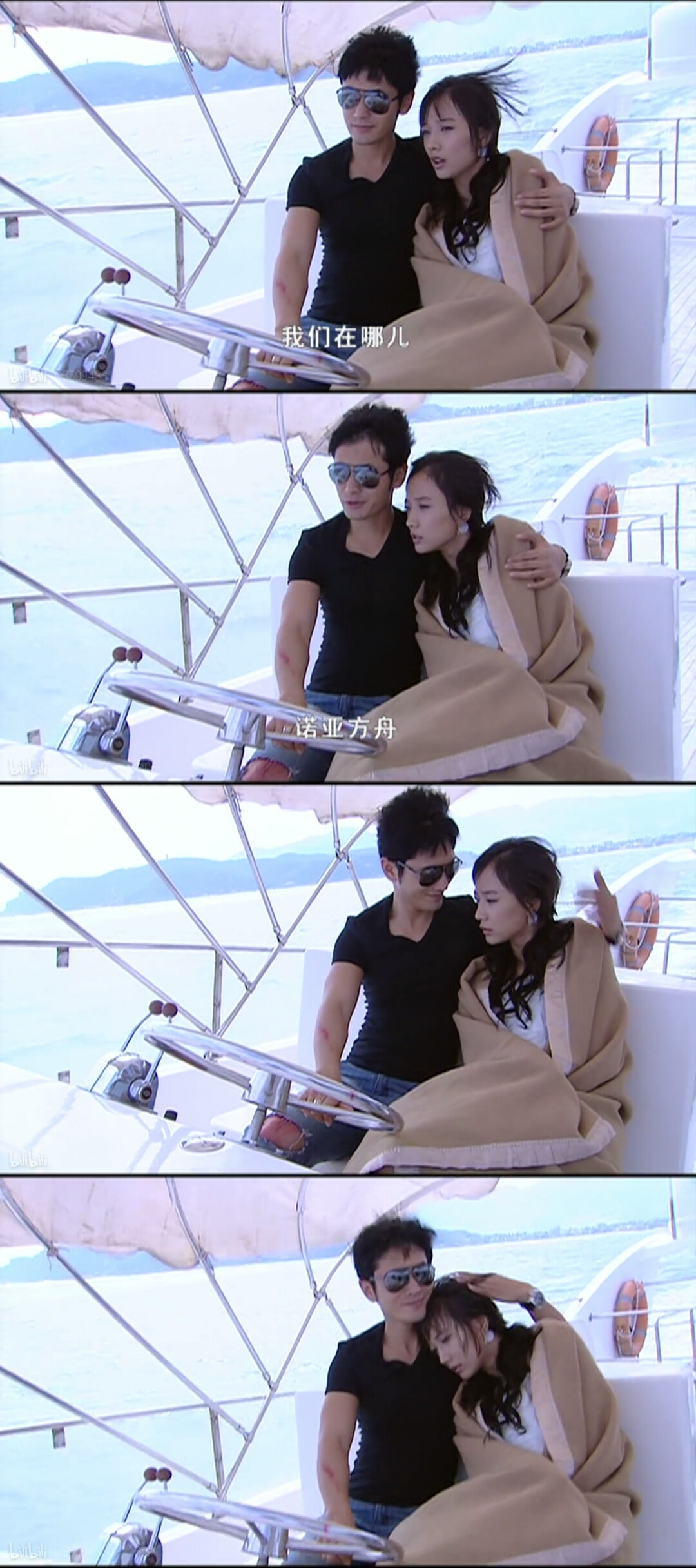 从密道背着伍月逃离,很喜欢这段,程远说“诺亚方舟”。此时的金蟾岛乱成一团,就像末日来临之前,而程远带着伍月乘坐诺亚方舟离开。