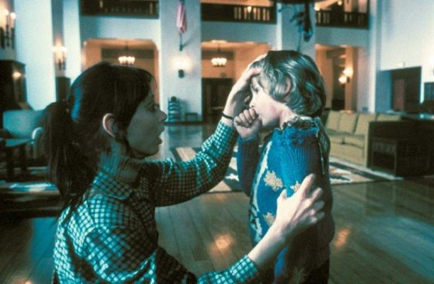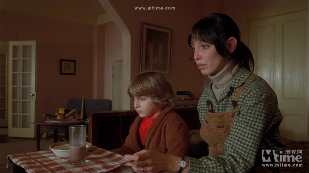 不仅现实本身给予了他无穷的压力,妻子的贤惠亦令他无比的痛苦。她起初想必也是他的书迷(当被告知山庄中曾发生过恶性命案时,杰克说“我妻子不会在意的,她最喜欢读恐怖故事”),结婚之前大概也同他有过极为浪漫的时光(杰克在楼梯上发飙时曾说过一句“light of my life”),至今仍在坚定地支持他的写作,只不过起了一点变化:孩子降生以后,她的柴米油盐酱醋茶程度要远甚于以往了,儿子而非丈夫占据了她生活的中心。这一方面将这对夫妇划分到了“理想”与“现实”两个平行世界——永远埋首家务的妻子,一举一动都仿佛在暗示着他这个世界有多么的世俗;另一方面,纵使琐事缠身、境况贫穷,妻子也始终满面笑容,这就没有给杰克任何发泄的借口,只能把种种郁结堆积在心灵深处。