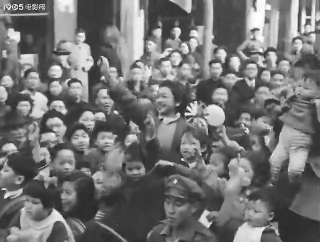 最让我感叹的段落,是片中特别用来铺梗的那个“加入游行的欢庆中”——第一次,解放前,明明是儿童却不能过一个儿童节,被警察乱棍从游行队伍中打了出来,自己扯旗子拉队伍上街;第二次,解放了,解放军进程、老百姓翻身,漂亮的文艺女向褴褛的小瘪三们挥手,招呼他们加入游行的队伍,一起扭着秧歌向前走。